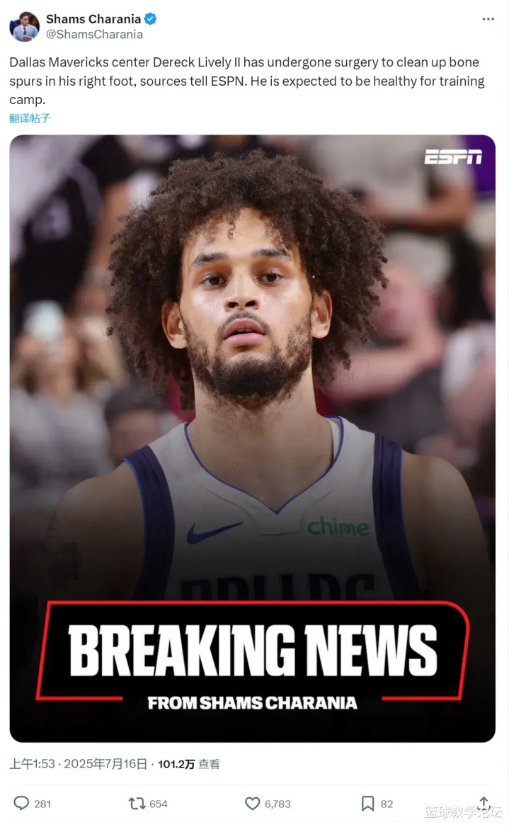 莱夫利右脚手术! 浓眉视网膜脱落! 独行侠三大主力受伤